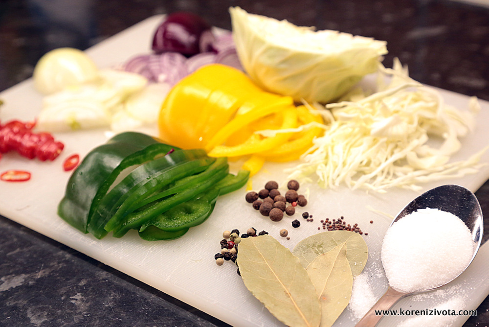 - 1 hrst tence pokrájeného zelí (bez košťálu)