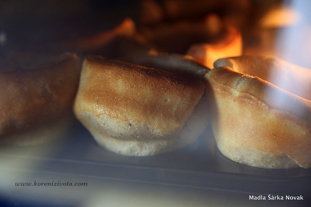 - ke konci pečení už je třeba těsto hlídat, neb hodně vyskočí a rychle se zabarvuje do zlatova