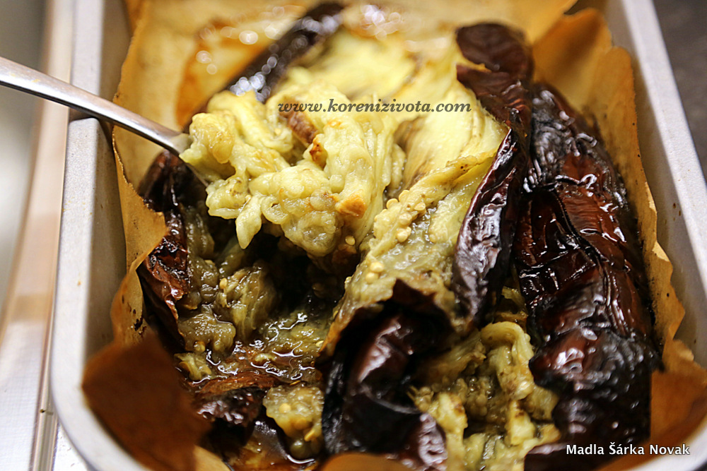 - lžící vydlabejte dužninu upečeného lilku