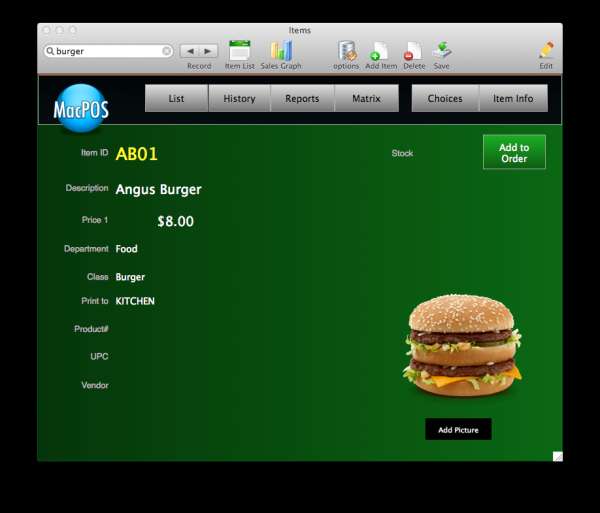 Menu Items and ProductsThe Items and Products database stores all your menu items and products that you sell. Access extensive Rich-Text documents to record menu ingredients and preparation information. Or access your online store's ordering page. Assign images to your menu items and view them easily and quickly. The Contacts database stores your customer, vendor and employee information. Each contact record can access RTF formatted documents or a Vendor's web page. Assign pictures to your contacts and view them at the point-of-sale.Increase profits by :